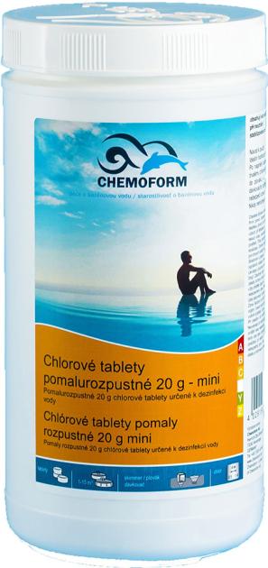 CHEMOFROM Chlorové tablety Mini jsou pomalu rozpustné 20g chlorové tablety určené k dezinfekci vody v bazénech.