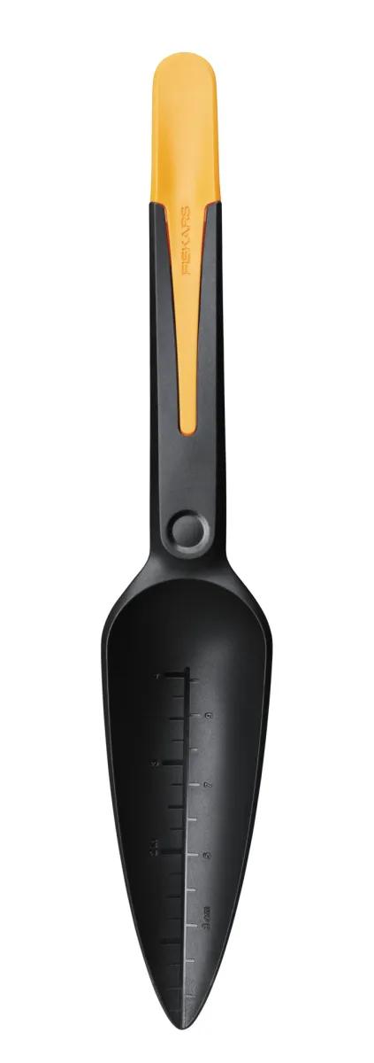 Lopatka na výsev semen Fiskars Solid nabízí v jednom lehkém a odolném nástroji čtyři základní pomůcky pro výsev semen. Unikátní lopatka obsahuje lžičku na semena, ostrý hrot, rozšiřovací lopatku a měrku. To vše je integrováno do jednoho dvoudílného nástroje. Dobře čitelná stupnice s anglickou a metrickou měrkou je vyražena do povrchu lopatky a při používání se nepoškodí ani nezmizí. Vyrobeno z lehkého, nerezavějícího materiálu FiberComp s vynikající odolností.