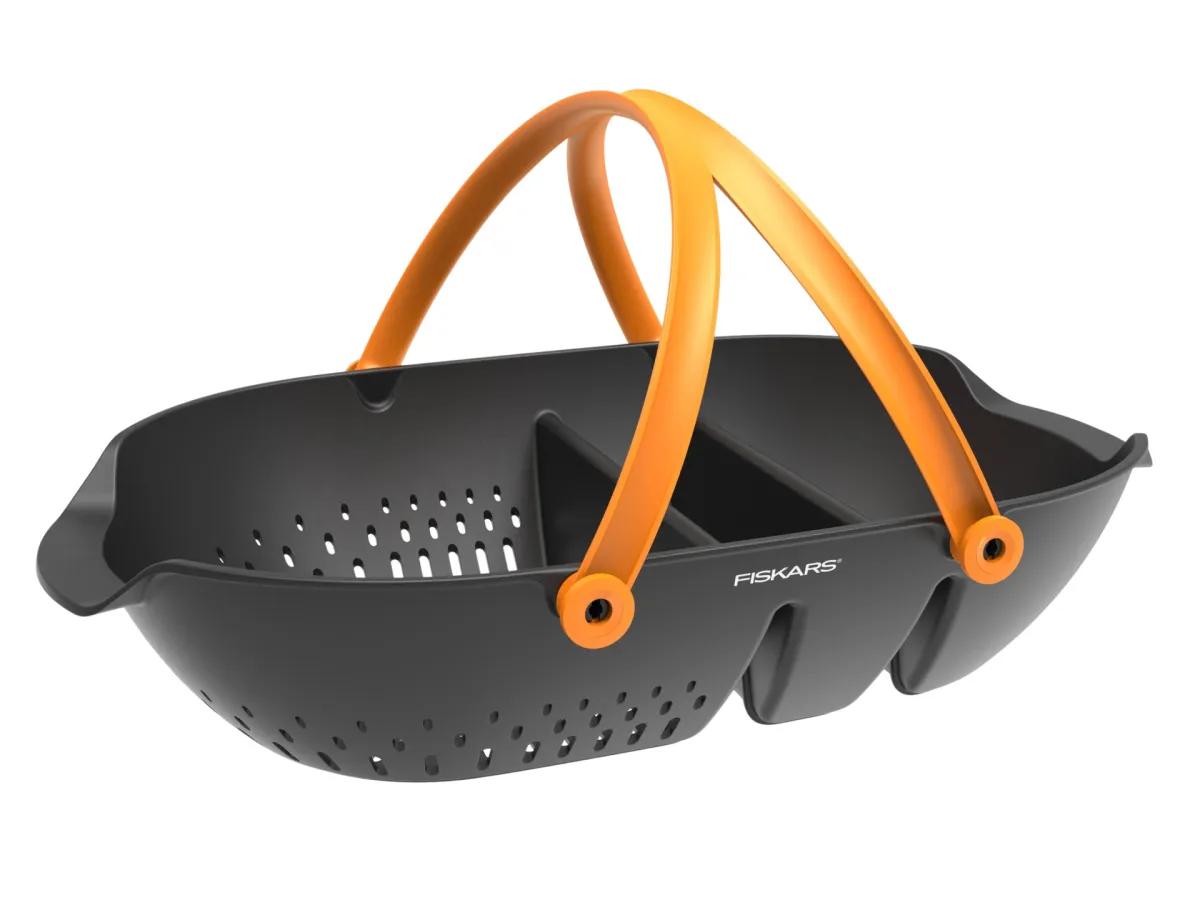 Košík Fiskars Plus Garden je ideální pro sběr, přepravu a čištění sklizně a zahradnického nářadí. Strana s cedníkem má odtokové otvory pro mytí právě nasbíraných produktů, zatímco uzavřenou stranu lze použít k namáčení nebo přepravě čistých produktů či nářadí. Ergonomické boční rukojeti jsou ideální pro nošení oběma rukama, zatímco sklopné rukojeti lze zafixovat pro pohodlné používání jednou rukou. Vyrobeno z odolného plastu.