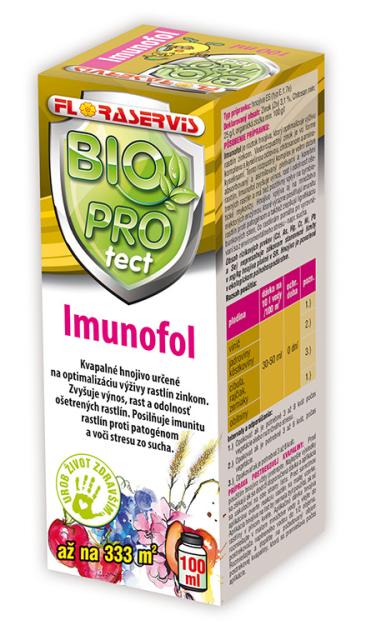Imunofol je roztok hnojiva, který optimalizuje výživu rostlin zinkem. Vodorozpustný zinek je ve formě chelátu s kyselinou octovou, chitosanem a aminokyselinami. Tento rozpustný chelát je velmi dobře absorbován a asimilován pletivy a kořeny rostlin. Imunofol zvyšuje výnos, růst i odolnost ošetřených rostlin a má také pozitivní vliv na symbiotické Mykorhiza. Hnojivo ovlivňuje i množství některých enzymů, které výrazně posilují imunitu rostlin proti patogenům a také zlepšují lignifikáciu buněčných stěn, což rostlinám pomáhá při vyrovnávání se z enviromentálního stresu- např. sucha. Omezuje výskyt bakteriálních, virových a houbových chorob.
