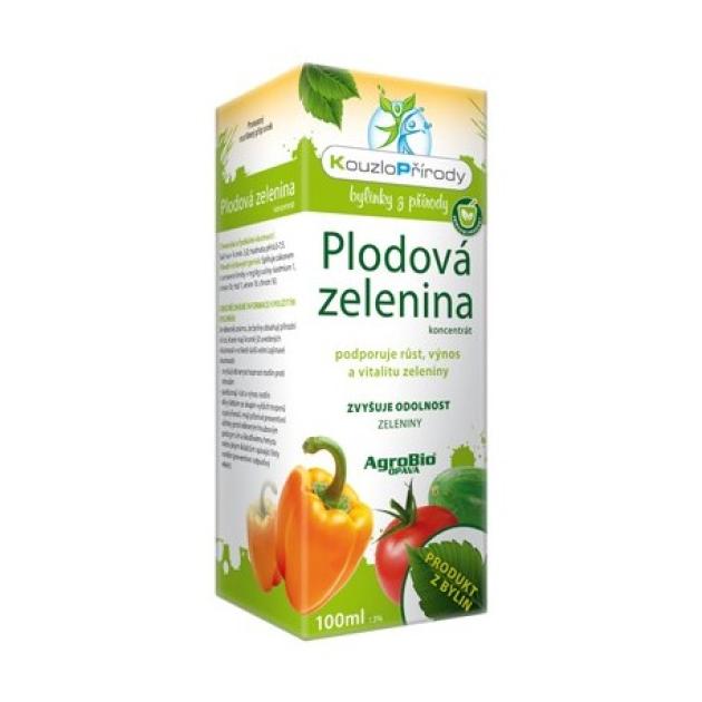 Plodová zelenina koncentrát je přírodní růstový aktivátor s výživou. Jedná se o vodný bylinný extrakt s převahou přesličky a kopřivy. Vhodný pro komplexní přírodní péči plodové zeleniny (rajčata, papriky, okurky) pěstované ve skleníku nebo na volné půdě. Přípravek obsahuje malé množství živin (N, P, K, Mg, Ca) a stopových prvků (Fe, Zn, Cu, Mn), které jsou v přípravku obsaženy v přijatelné formě pro rostliny. Podporuje růst, výnos a vitalitu plodové zeleniny a zároveň zvyšuje obranyschopnost a odolnost vůči stresu. Obsažené byliny v tomto přípravku jsou známé svými účinky proti savému a žravému hmyzu (např. mšice, svilušky, molice) a proti houbovým chorobám (např. plíseň bramborová, padlí, listové skvrnitosti).