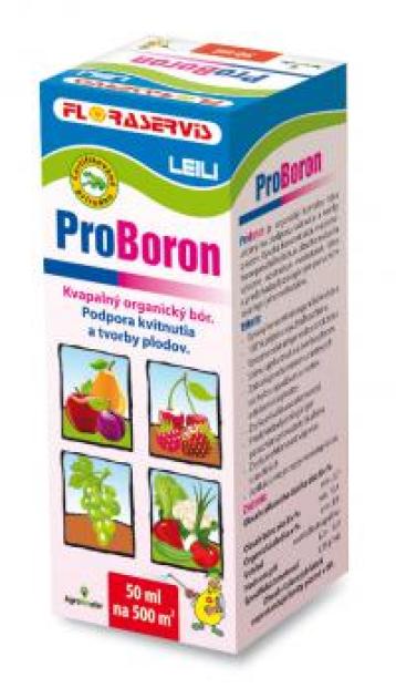 ProBoron je organický komplex bóru určen na podporu kvetení a tvorby plodů. Vysoká koncentrace kapalného organického bóru s obsahem dusíku výrazně odstraňuje nedostatek bóru a předchází fyziologickým poruchám rostlin při jeho nedostatku.
