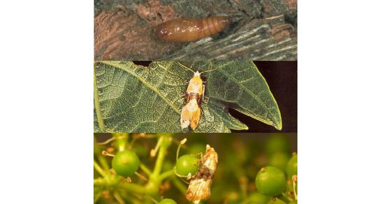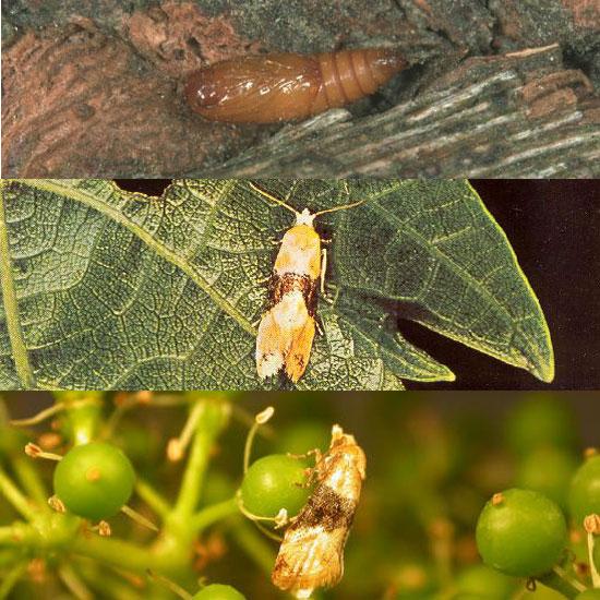 Pavučinkou spředené květenství. Vykousané, později zahnívající nebo seschlé bobule.