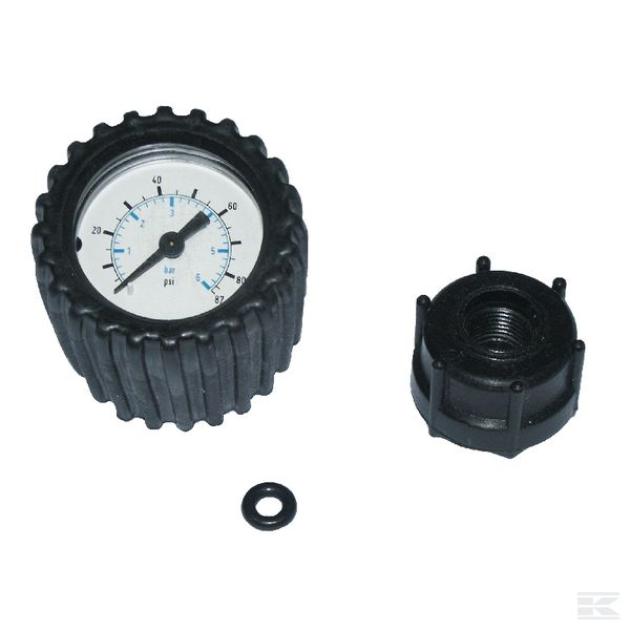Manometr do 10 barů s přípojkami. Ke kontrole tlaku postřiku. Můžete přesně aplikovat postřik požadovaným tlakem.