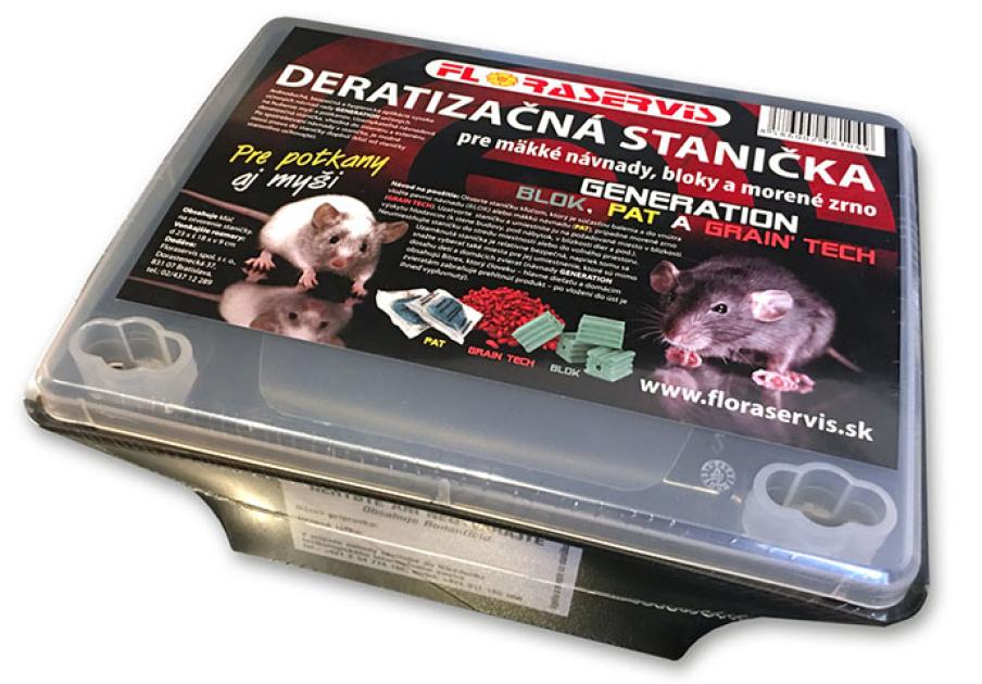 Deratizační stanička určená pro hubení potkanů a myší, bez náplně. Jednoduchá, bezpečná a hygienická aplikace návnad určených k hubení potkanů (ideální pro přípravky GENERATION, vysoce účinné návnady proti myším a potkanům). Uzamykatelná deratizační stanička, vhodná do interiéru i exteriéru. Po spotřebování návnady v staničky, je možné novou znovu do staničky doplnit pomocí přiloženého klíčku. Staničky otevřete klíčem, který je součástí balení a dovnitř vložte pevnou návnadu - blok, nebo měkkou návnadu, případně mořené zrno (doporučujeme přípravky GENERATION). Uzavřete staničky a umístěte ji na požadované místo v blízkosti výskytu hlodavců (ke stěně budovy, pod nábytek, v blízkosti děr apod.). Uzamčena nádražíčko je relativně bezpečná, nakolik je bez použití klíčku neotvoritelná. Bezpečnost aplikace vnadidla staničky zvýšit použitím přípravků GENERATION, které obsahují přípravek Bitrex, který člověku, hlavně dítěti a domácím zvířatům zabraňuje spolknout produkt, po vložení do úst je ihned vypľuvnutý. Bitrex zajišťuje vysoký standard bezpečnosti přípravku Generation. Obsahem je klíč k otevření staničky.