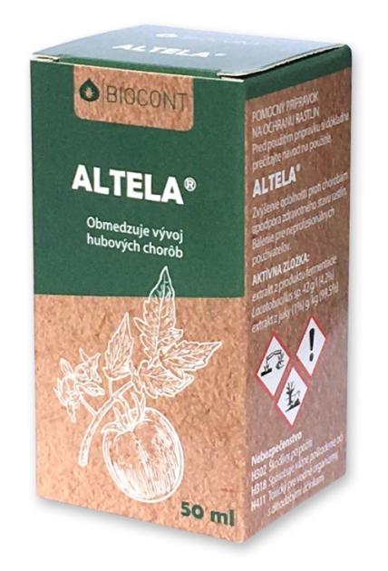 Biologický přípravek k omezení výskytu houbových chorob (plísně, strupovitost) brambor, rajčat, jahod, zeleniny, ovocných dřevin a révy. Altela je kontaktně působící produkt, který omezuje vývoj patogenních hub a bakterií na povrchu rostlin. Obsahuje přírodní enzymy, polyketidy, neživé bakterie, rostlinné extrakty, které vytvářejí na povrchu rostlin nevhodné prostředí pro řadu patogenních organismů. Zároveň obsahuje některé stopové prvky jako je mangan a zinek, které jsou významné pro aktivizaci obranných mechanismů rostlin. Altela se používá v období předpokládaného výskytu patogenů - po splnění infekčních podmínek nebo v období viditelného výskytu choroby.