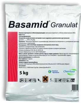Basamid je půdní fumigant. Účinná látka dazomet při dostatečné půdní vlhkosti vytváří plyn metylizotiocyanát, který má dezinfekční a dezinsekční vlastnosti.