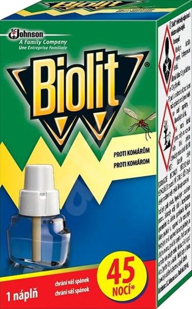 Náhradní tekutá náplň je určena pro elektrický odpuzovač Biolit. Hubí a odpuzuje komáry, pakomáry, pakomárce a jiný malý hmyz. Ochrání Vás před nepříjemným hmyzem nejméně po dobu 45 nocí.
