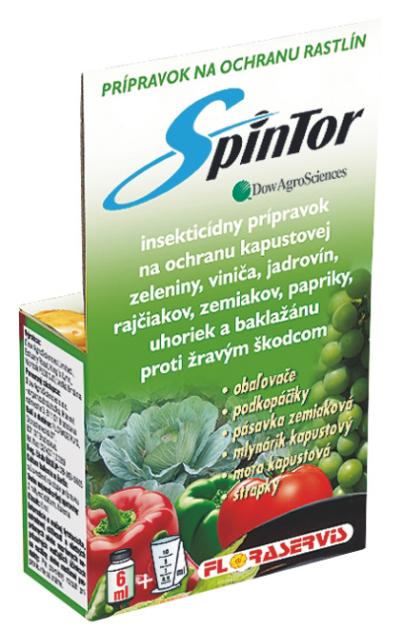 Spintor, postřik proti škůdcům obsahuje účinnou látku spinosad, což je přírodní produkt získaný fermentační činností bakterií Saccharopolyspora spinosa, která se běžně vyskytuje v půdě. Jako přírodní produkt se spinosad vyznačuje mimořádně nízkou toxicitou vůči člověku a teplokrevním živočichům, je tedy šetrný k životnímu prostředí. Spintor působí jako požerový a kontaktní přírodní insekticid. Vyznačuje se novým mechanismem působení. Účinek nastává již po několika hodinách, následně dochází k úhynu hmyzích škůdců. Spin Tor nepůsobí na savý hmyz (mšice). SPINTOR obsahuje Inhibitory chitinu, to jsou syntetické látky (deriváty močoviny), které nepůsobí kontaktně ani nejsou v pravém slova smyslu pro hmyz jedovaté, ale po nahromadění v těle způsobí, že larvy při svlékání nejsou schopny si vytvořit novou vnější kostru a hynou. Působí jen na svlékající se stadia hmyzu, tedy larvy a pouze na ty druhy, které zkonzumovaly ošetřenou část rostliny - tedy převážně samotného škůdce; pro ostatní druhy jsou z valné části neškodné.
