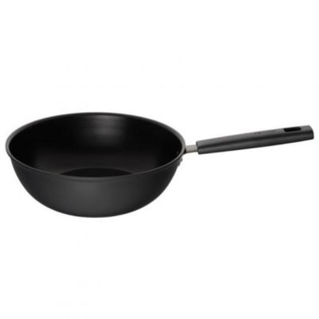 Fiskars hliníková pánvička Wok pro náročné úkoly. Nepřilnavé vlastnosti, nejlepší povrch Hardtec Superior, bakelitové bezpečné držadlo, silnější dno šetřící energii, moderní černý design.
